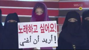 أثارت آخر حلقة عُرضت من برنامج Star King حفيظة السعوديين بشكل كبير .. الحلقة لم تترجم بعد إلى الإنجليزية لكن ما فهمته من تعليقات بعض الأجانب هو أن الفتاة الكورية قد عاشت في السعودية لمدة 10 سنين وهي تحب الغناء لكن لأنها تسكن في السعودية فهي لم تتمكن من تحقيق ذلك (لأن النساء ممنوعات من هذا).