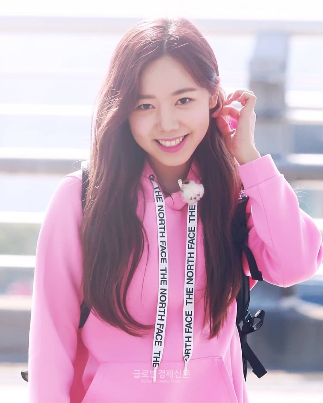 صورة نامجو (Namjoo) عضوة فرقة آي بينك (A Pink) في المطار بعد أن أنهت تصوير حلقتها في برنامج قانون الغاب (Law of the Jungle).