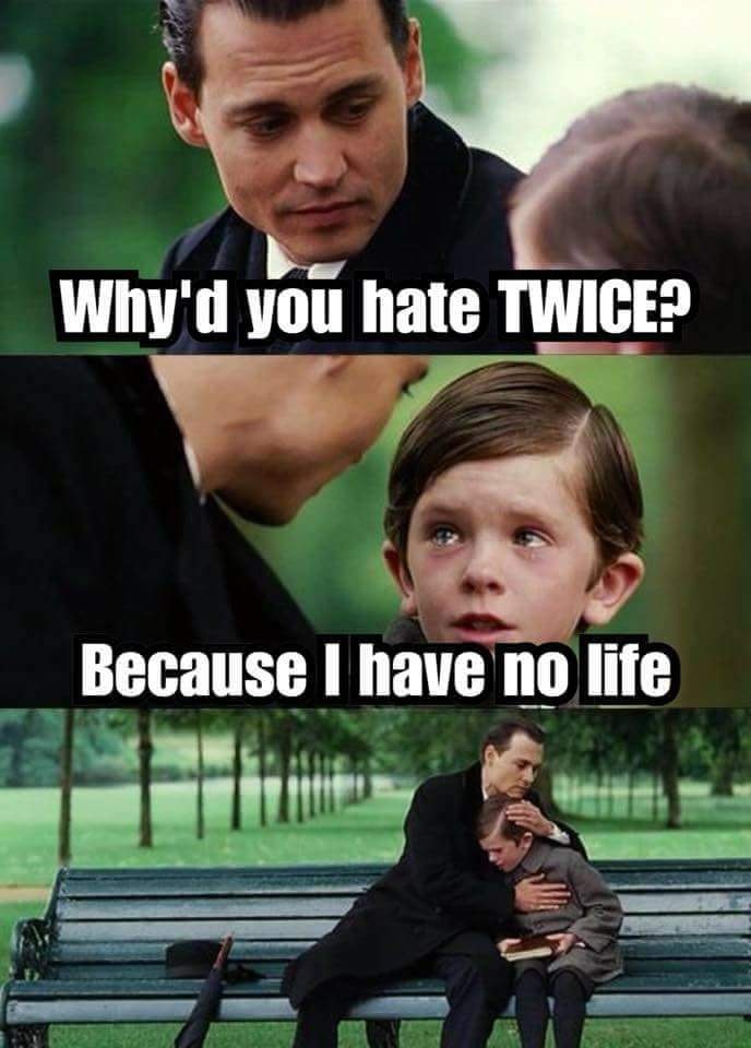 ههههههههه السؤال الذي يطرح نفسه بإلحاح هو لمذا ؟ يكرهون توايس لذي الدرجة لازم حد يجوابني قبل ما أموت