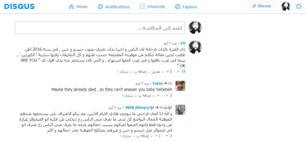 الغبي اللي متعب نفسه و حاطط لي ديسات في كل تعليقاتي الفردية , حرفيا كل تعليقاتي الفردية ابي اقول لك يا الكلب انك بزر و تدري انا فرحانة لاني محور كونك , حقيقة انك جالس تناوب الحساب ورا الثاني مشان الديسات شيء يخليني افرح و انبسط لاني حارقتك و متعبتك لذي الدرجة , حاطط لي 5 ديسات ؟ , اوه ماي قاد تعبت صح ؟ , اقول لك ببساطة روح انشغل بحياتك احسن لك , لانك راح تتعب و انت تحتي في كل مقالة https://uploads.disquscdn.com/images/33058d9da7bcb8dd10f0368ac8dcf6ba46466934d7881c5c4bdff7dcc2b329ef.png https://uploads.disquscdn.com/images/cb287f99cc38ef58831f78e20f607336ff65539cf4589e85d4945d1ad2098fee.png https://uploads.disquscdn.com/images/782adeedc71369eb761e001a0d7239d9e02767a04c611dc765d004fd70b04805.png