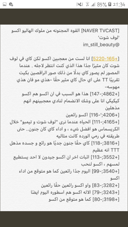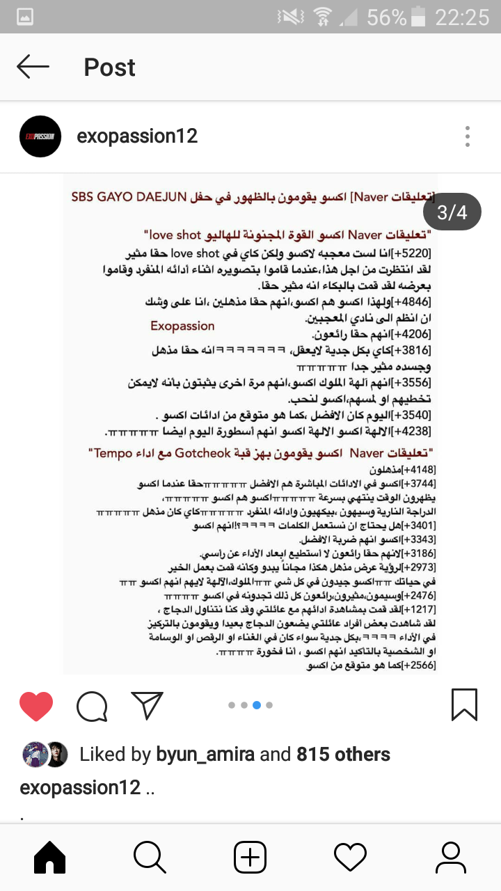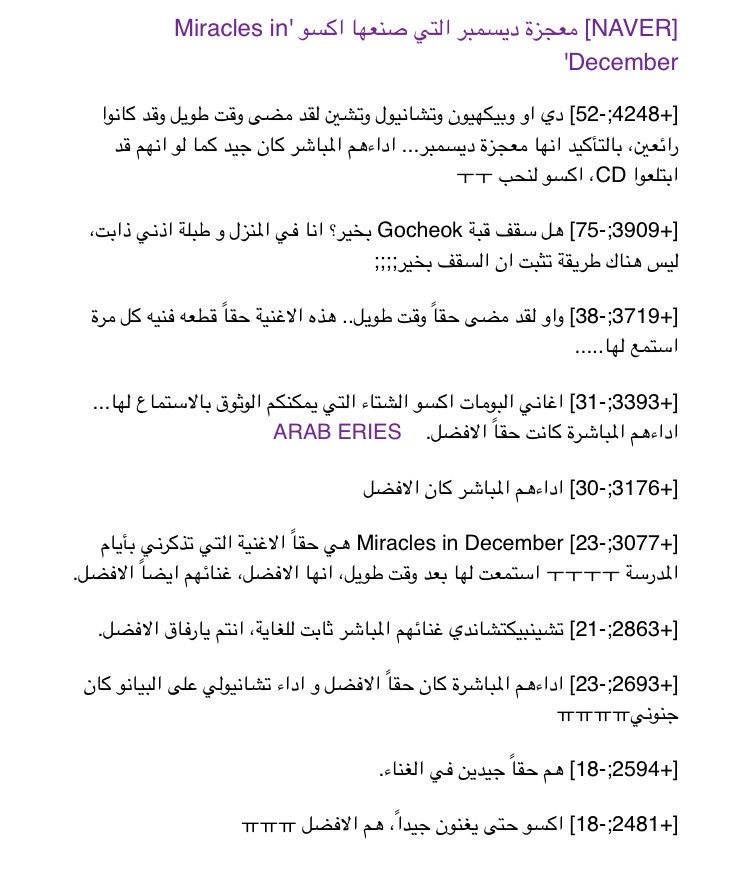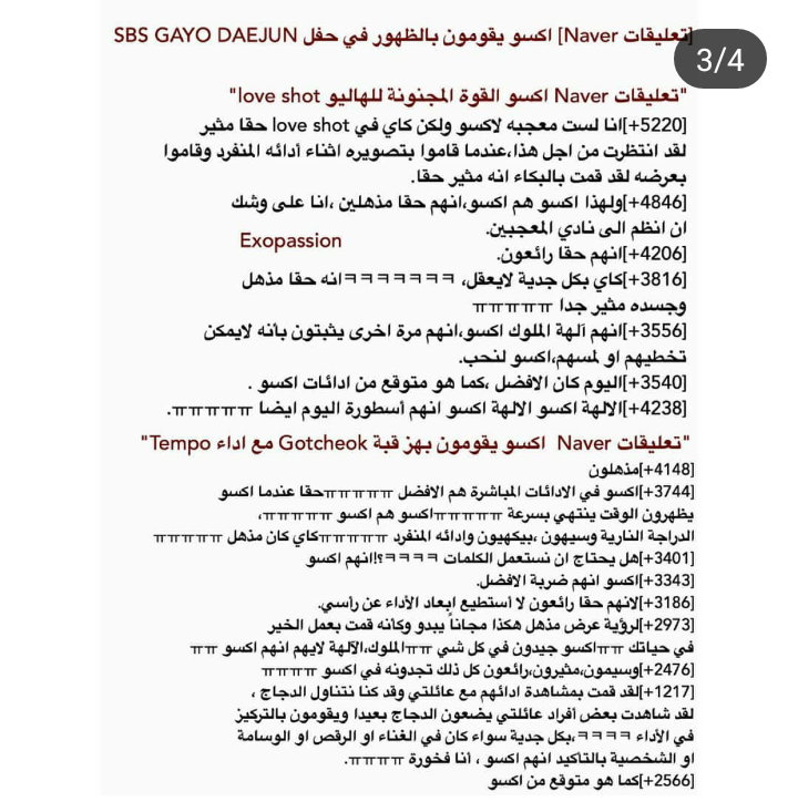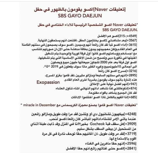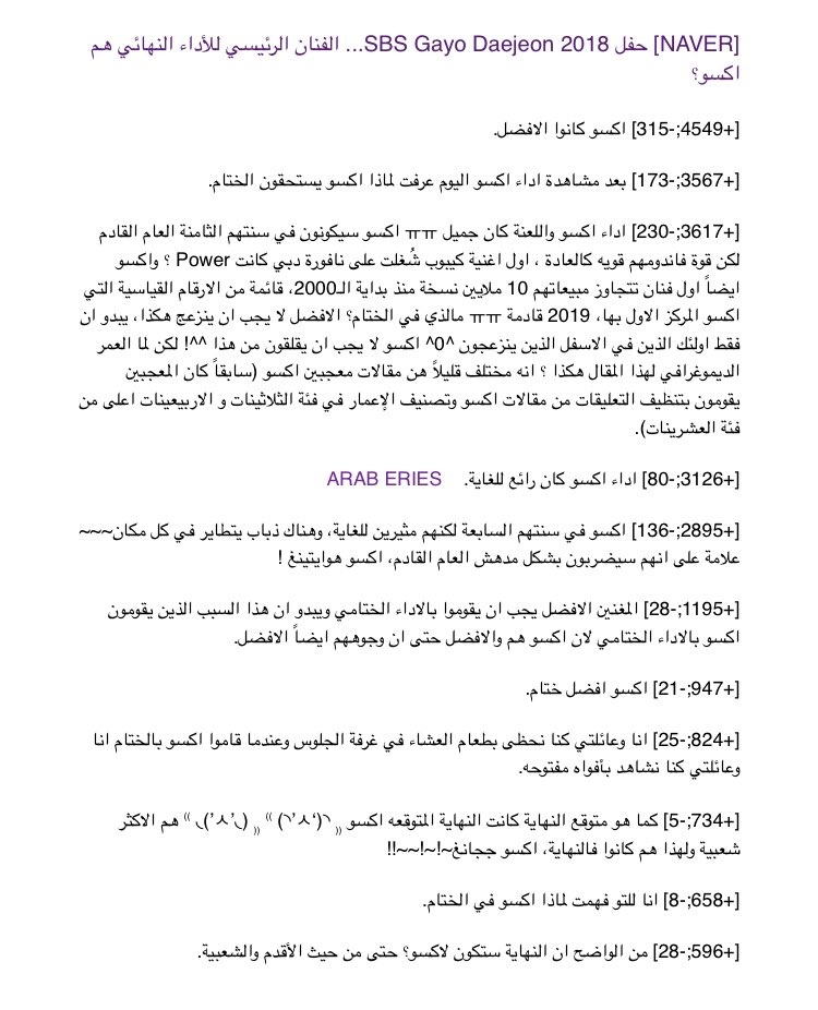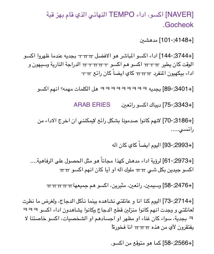 - [+2,812, -482] جميعكم تعرفون أن SM مهووسين جدا بالآداءات الختامية. هم على الأرجح هددوا بعدم حضور إكسو لو أنهم لم يحصلوا على الآداء الختامي ههههههه
