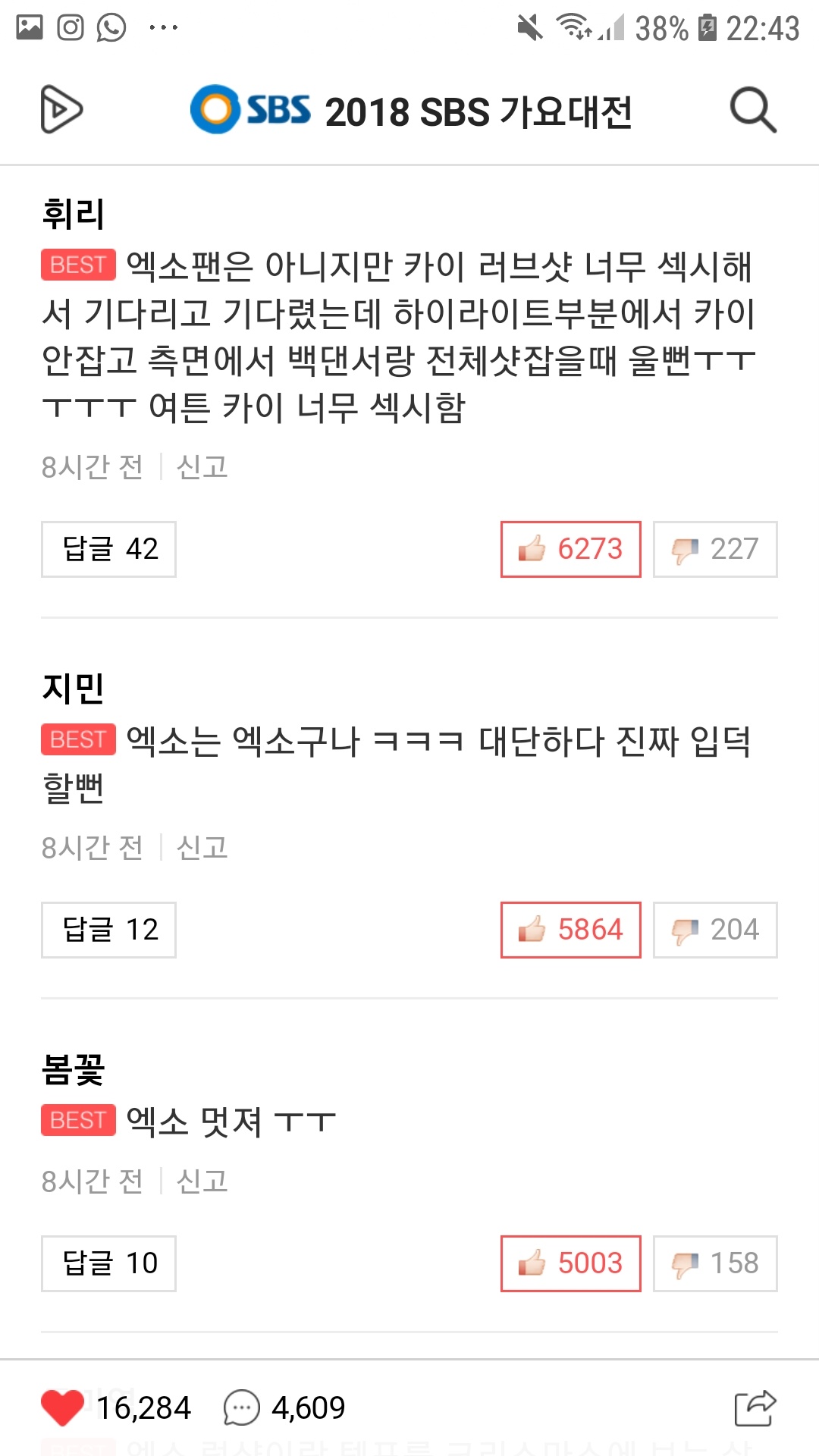 - [+234, -66] لطالما اعتقدت بأنه من الأنانية والطفولية أن تحظى وكالة SM بالآداءات الختامية على كل برنامج موسيقي