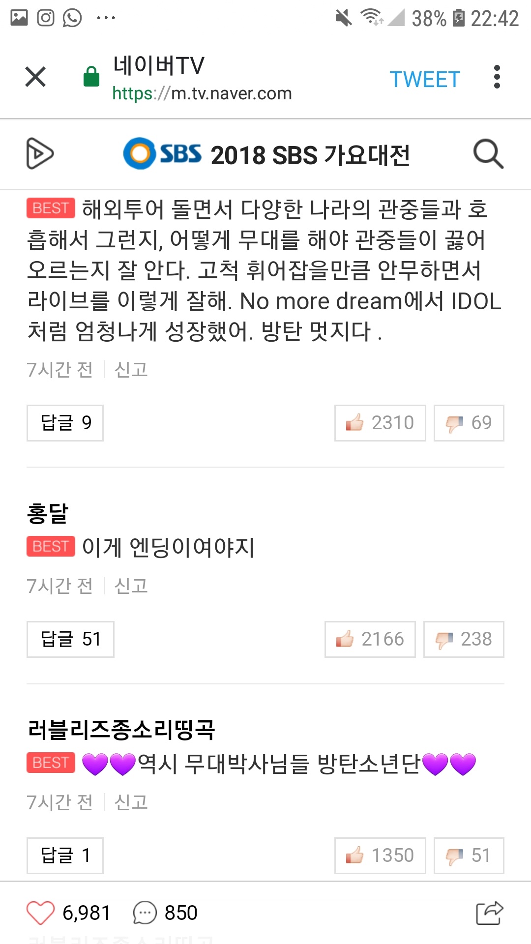 [+971, -30] أنا أعرف أن الناس مستائين من الآداء الختامي حاليا لكني أعتقد بأنه كان أفضل لفتيان بانقتان أن يرتاحوا في الخلف مع جون هيون مو ويمسحوا عرقهم بدلا من تقديم الآداء الختامي. لقد كان مضحك أيضا رؤية كيف أن بانقتان كانوا الوحيدين الذين انحنوا من أجل السنة الجديدة في النهاية. أحب كيف أنهم مشرقين. 😂😂😂😂😂😂😂😂😂 ومن هنا عرفت مقوله انته تشوف من …… شكلي انا اتخيل هذوله مو اكسو