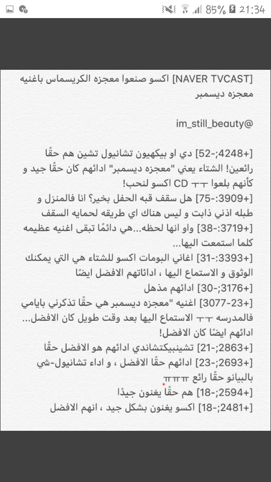ما حد جبر الأكسو-ألز أو أي فندوم يفتح الليستيك في آداء بنقتان و نفس الشئ فجزء أكسو ما شفت ولا ليستيك ما عدا ليستيك أكسو لدرجة صار و كأنو كونسرت أكسو