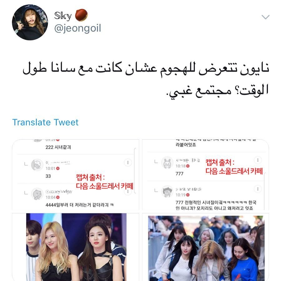 الكارهين بس بدهم سيرة لكراهية توايس وهاي السالفة جاتهم على طبق من ذهب معروف عن مستخدمي موقع نات ما بيحبو الايدولز البنات ابدا يعني فهمنا انو سانا اجنبية وعم يتنمرو عليها بس حتى العضوات الكوريات ما بيسلمو منهم لساتني اتذكر سالفة جونغيون وكيف اكلوها بكلامهم لانها بكت بسبب التعب يعني هذول الناس مرضى انا ما بيهمني كلامهم المهم عندي انو الونس لساتو بيحب سانا وتوايس وبيدعموهم
