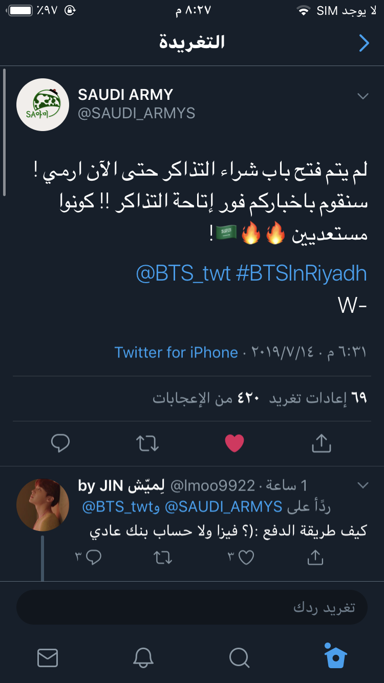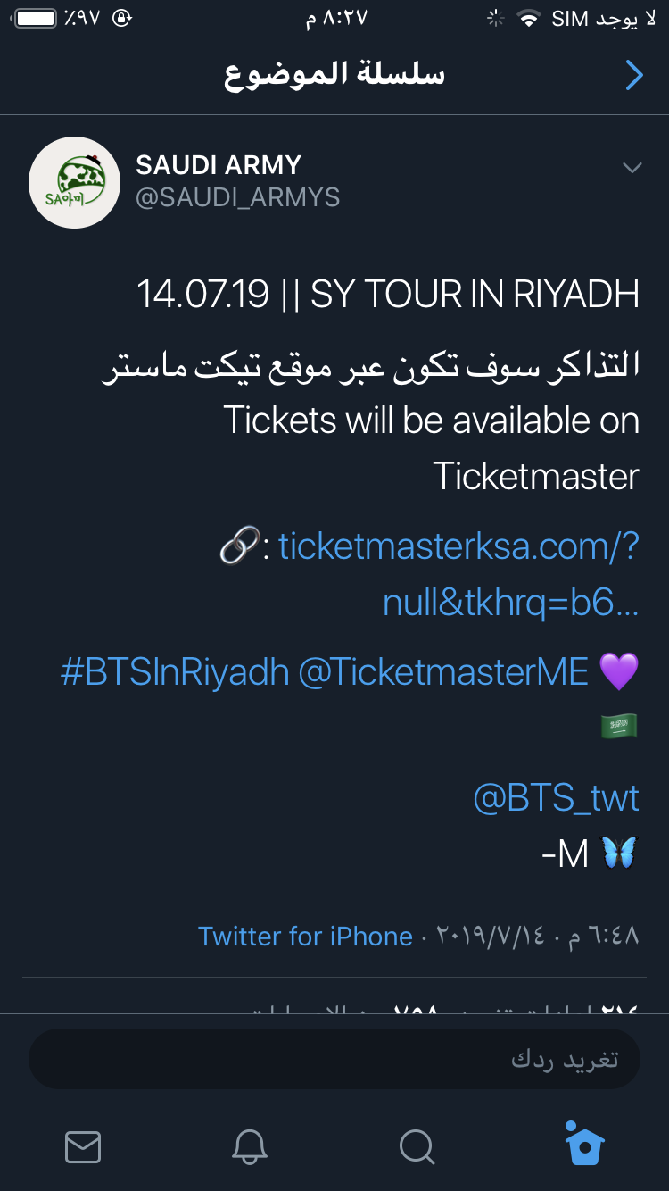 أضاف فتيان فرقة بانقتان (BTS) موقع جديد لجولتهم العالمية Love Yourself: Speak Yourself وهذا الموقع سيسعد كل الآرمي العربي لأن الدولة هي المملكة العربية السعودية.