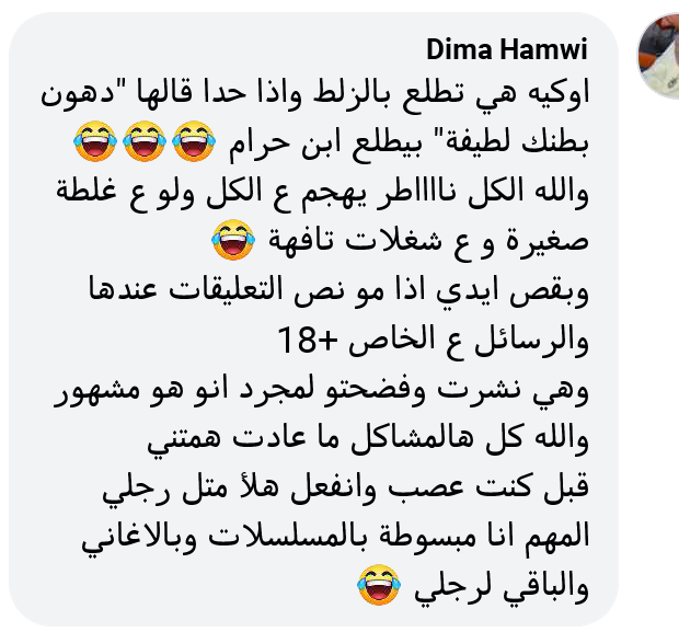 لذا السبب يلي خلاني ادرس قانون و ادافع ع حالي لحالي … المجتمع تبعنا ما يبغالو انك تشغلي بالك بيه اعملي يلي بدك ياه و يلي يقرب خليه يعض اصابعو من الندم