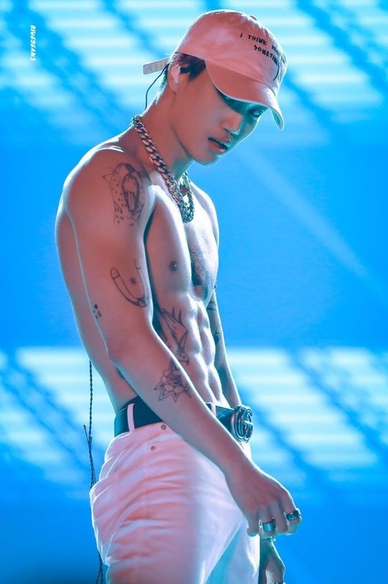 كاي عضلاته مميزة ثمانية مش سداسية هو وجونغكوك من بتس عندهم هيك نوع من العضلات
