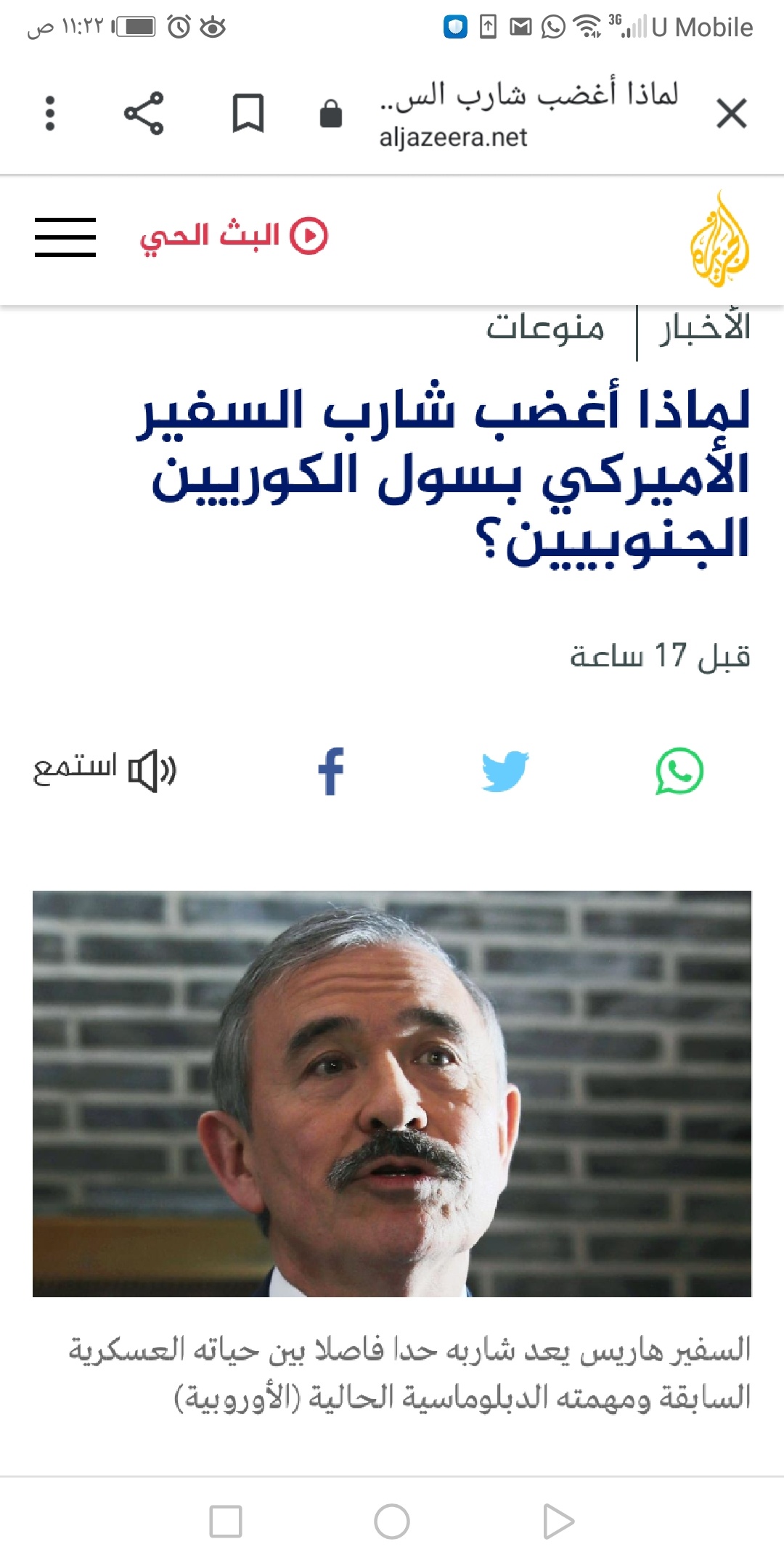 تعرفو اش يضحك، الكوريين يقولون ان الأجانب حساسين بزياده بينما هم زعلو عشان السفير الأمريكي شاربه يشبه شارب الجنرالات اليبابانيين في الماضي 😂 https://uploads.disquscdn.com/images/e767b7a803073497be88f22bb97f491ddf62c5c97c5bf38a436548972ba19b42.jpg مين الأكثر حساسيه الان ههههه