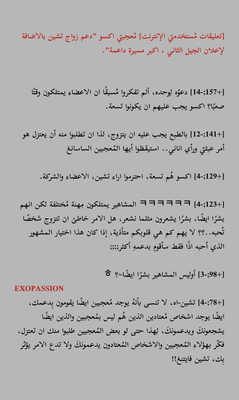 معك فى هذا الرأى وعلقت عليه كتير مش لازم يكون تشين فقط بل واى فرقة لازم نرفع هاشتاج باللغتين عربى وانجليزى لحتى يعرفوا أننا معهم وضد أفكار الكوريين