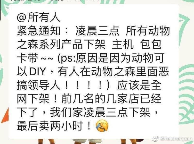 تحظى لعبة Animal Crossing حاليا بشعبية كبيرة في كل أنحاء العالم. والصين واحدة من الدول التي اكتسحتها اللعبة وحققت نجاح ضارب فيها على الرغم من أن اللعبة لم تتوفر حتى الآن في الصين بشكل رسمي لذلك يلجأ الصينيون إلى استيراد اللعبة من الخارج.