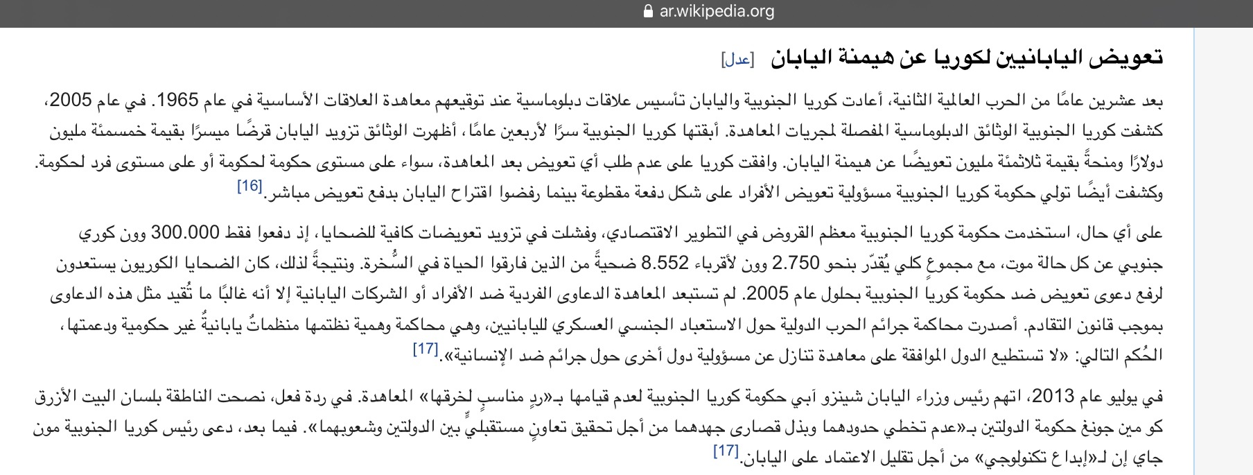 كيف تقولي انه اليابان ما اعتذرت ل كوريا انتي ما تتابعي اخبارهم ولا بس تسمعي كلام الكوريين و ايوا اوفر يكرهوهم لحد اليوم يعني السالفه ايام الحرب العالميه الثانيه و تقريباً اكثر الدول تحاربوا ذاك الوقت مب بس كوريا و الحرب كانت سنة 1910 لحد 1945 يعني اجداد اجدادهم و بخصوص انهم ما اعتذروا شوفي ذي الصور من ويكيبيديا تثبت انه اليابان كم مره اعتذروا ل كوريا و ساعدوا العوائل المتضرره https://uploads.disquscdn.com/images/9a6cc1d9e0afe5b687facb97c35c06948f0f2c6f7a38307fd3051b10508ed022.jpg https://uploads.disquscdn.com/images/2d6de0cc7d3f0be046f677b312755706622d55f70d2dac61c2a716ccbd322091.jpg