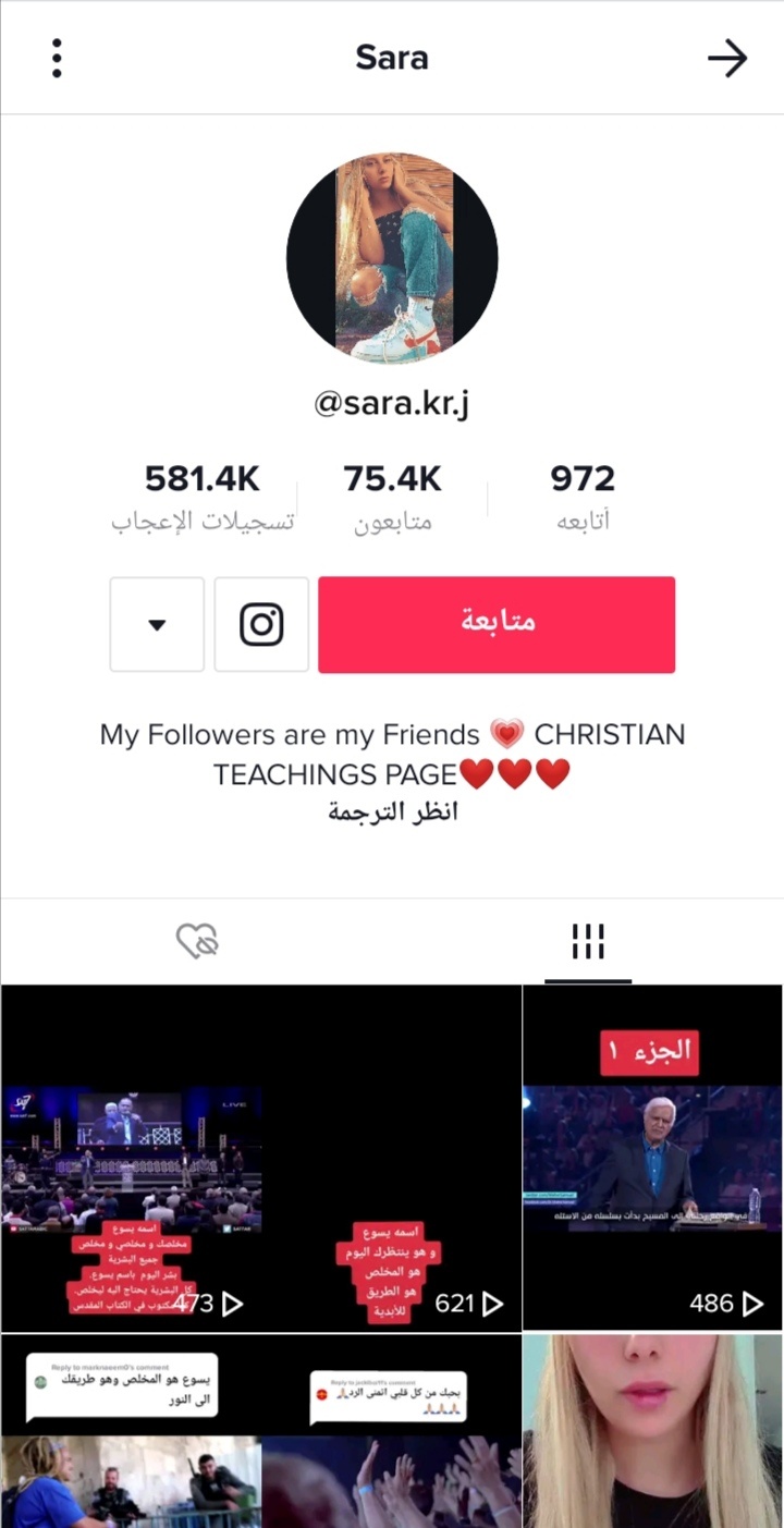 فجأه تذكرت وحده في تيك توك اسمها sara.kr.j دخلت ناس صغار مسلمين المسيحيه واهلهم ما يعرفون